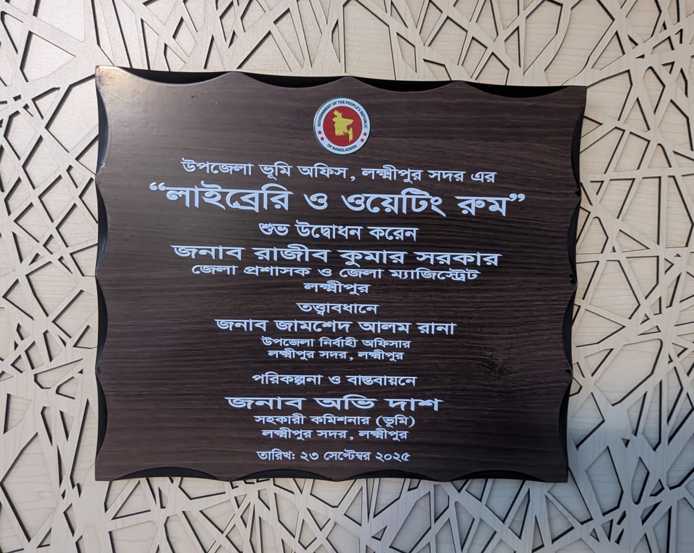 জনাব অভি দাশ, সহকারী কমিশনার (ভূমি), সদর, লক্ষ্মীপুর এর পরিকল্পনা ও বাস্তবায়নে জনাব জামশেদ আলম রানা, উপজেলা নির্বাহী অফিসার, সদর, লক্ষ্মীপুর এর তত্ত্বাবধানে উপজেলা ভূমি অফিস, সদর,লক্ষ্মীপুরে নবনির্মিত "লাইব্রেরি ও ওয়েটিং রুম" এর শুভ উদ্বোধন করেন জনাব রাজীব কুমার সরকার, জেলা প্রশাসক, লক্ষ্মীপুর।