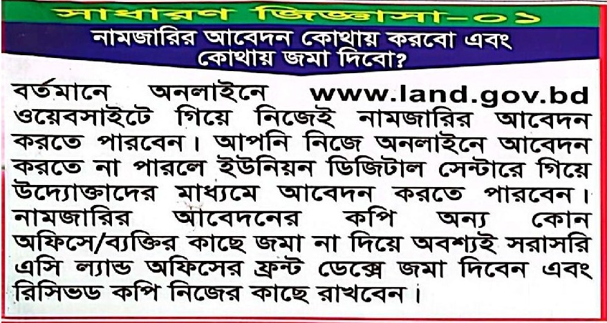 ভূমি সম্পর্কিত সাধারণ জিজ্ঞাসা-১
